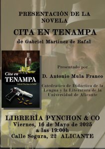VIERNES, DÍA 16 DE MAYO DE 2025, A LAS 19:00 H.: PRESENTACIÓN DE LA NOVELA «CITA EN TENAMPA», DE GABRIEL MARTÍNEZ DE RAFAL, EN LA LIBRERÍA PYNCHON&CO., C/ SEGURA, 22 , ALICANTE