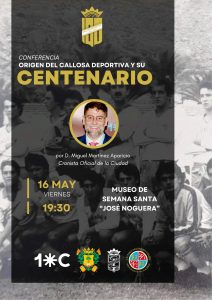 VIERNES, 16 DE MAYO, A LAS 19:30 H., CONFERENCIA «ORIGEN DEL CALLOSA DEPORTIVA Y SU CENTENARIO», POR D. MIGUEL MARTÍNEZ APARICIO, CRONISTA OFICIAL DE LA CIUDAD, EN EL MUSEO DE SEMANA SANTA «JOSÉ NOGUERA»