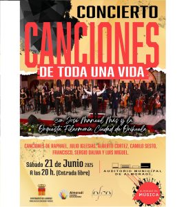 SÁBADO, DÍA 21 DE JUNIO DE 2025, A LAS 20:00 H., EN EL AUDITORIO MUNICIPAL DE ALMORADÍ, CONCIERTO «CANCIONES DE TODA UNA VIDA», CON JOSÉ MANUEL MÁS Y LA ORQUESTA FILARMONÍA CIUDAD DE ORIHUELA, DIRIGIDOS POR EL MAESTRO SIXTO HERRERO,