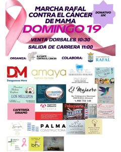 Cartel anunciador MARCHA RAFAL CONTRA EL CÁNCER DE MAMA. Organiza: Asociación Alicante contra el Cáncer. Colabora: Excmom. Ayuntamiento de Rafal. Empresas y Comercios de Rafal.